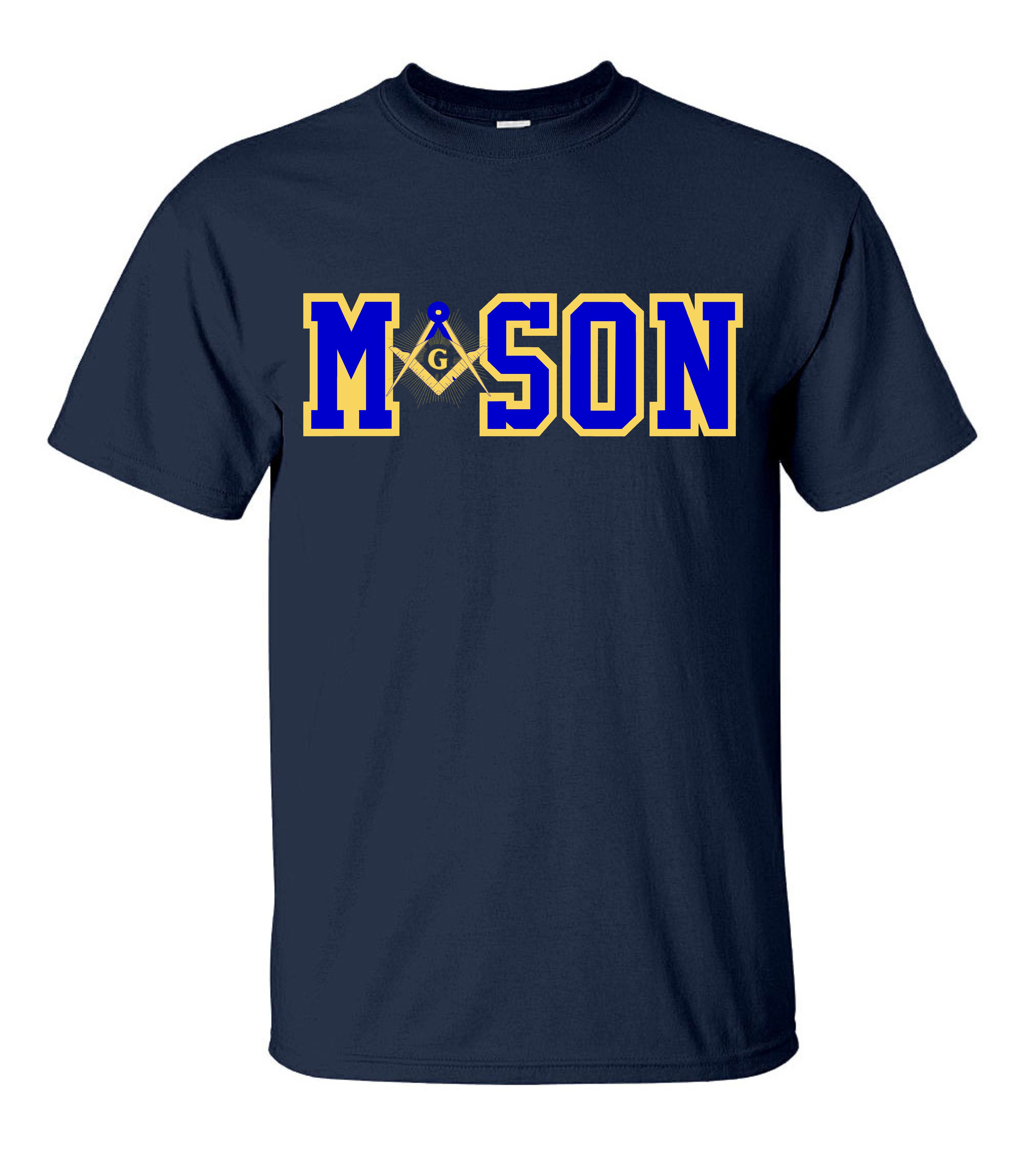 This is another one of our signature designs. Note the details of the rays in the square and compass. Applique letters are sewn into, not pressed onto, our high quality tees. This one is done on a high quality adult tee. It will be an everyday favorite!
